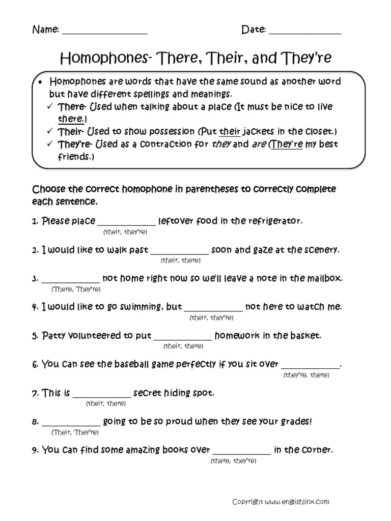 23.05.2016 · This week's free printable is a practice page dealing with homophones, specifically "their," "there" and "they're." It's great to hand out as a review.