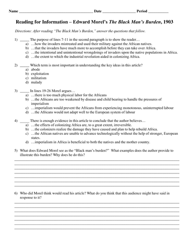 White man's burden worksheet