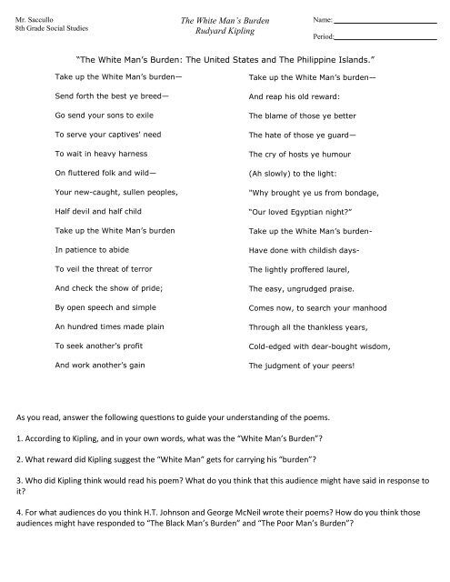 Results 1 - 12 of 12 — This quick worksheet features the famous Rudyard Kipling's White Man's Burden which is featured in almost every US history set of ...