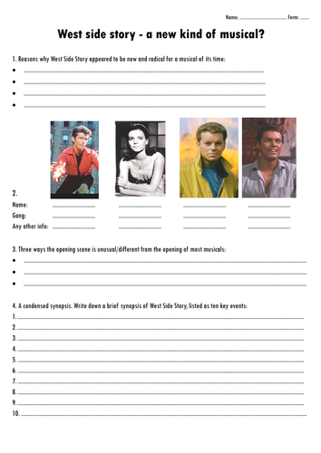 West side story worksheet.