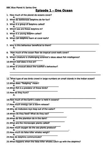 Blue Planet II - Episode 1 "One Ocean", worksheet and ...