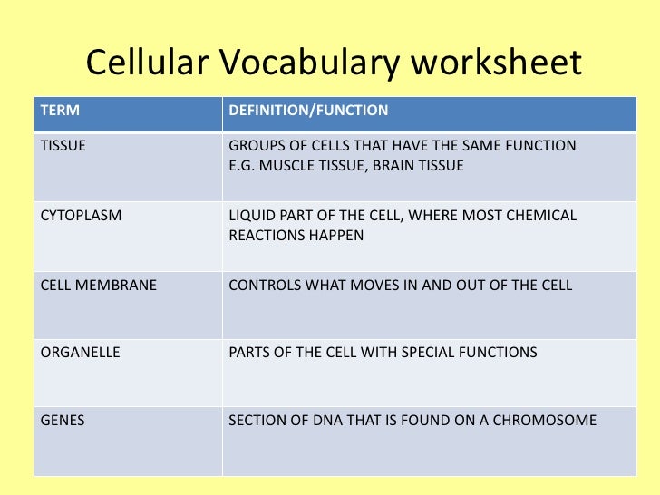 High School Biology Worksheets and Answer Keys, Vocabulary Sets. Introduction to cells - Biology All living things are made from one or more cells. The nucleus is the control center of the cell. It houses the nucleolus and genetic material (chromatin) used for directing cell functions.