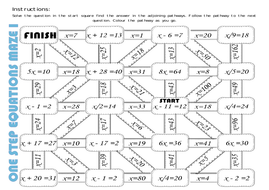 7th grade two step equation maze answer key. 13 -4x 9 127 3x 34 13. These equations worksheets are a good resource for students in the 5th grade through the 8th grade. For the maze the answer they get to one problem leads them to the next problem.