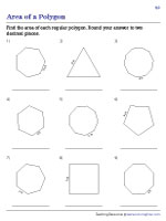 Polygons Worksheets - Math Worksheets 4 Kids Area of Polygons Worksheets Explore this batch of printable area of polygons worksheets, ideal for grade 6 through high school to determine the area of regular and irregular polygons using the given side lengths, apothem and circumradius. Practice finding the apothem as well. (21 Worksheets) Angles in Polygons Worksheets