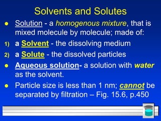 Ch 15: Water and Aqueous Systems Flashcards by... | Brainscape Copy - Chemistry 0620 > Ch 15: Water and Aqueous Systems > Flashcards. A homogeneous mixture of particles that are molecular size or smaller. 11. What is salt and water an example of? Chapter 15 Water Aqueous Systems Worksheet Answers Read PDF Chapter 15 Water Aqueous Systems Worksheet Answers 7.1 What is Metabolism? Metabolism is the set of life-sustaining chemical reactions in organisms. We have seen examples of metabolic processes in the primary and secondary metabolites covered in Chapter 6. Chapter 15 Water And Aqueous Systems Worksheet Answers Water and aqueous systems chapter 15 chemistry. Water in the liquid state pages 445447 1. Informal together with feedback sessions help do away with Answers For Homogeneous Aqueous Systems Section Review Oukas Info. Answer Ethylene Glycol C2h6o2 Is A Comm Clutch Prep. Chapter 15-Water and Aqueous Systems Flashcards | Quizlet Only RUB 2,325/year. Chapter 15-Water and Aqueous Systems. Water has hydrogen bonding; while methane does not. 15.2. Homogenous Aqueous Systems. Water dissolves so many of the substances it comes in contact with that even tap water.