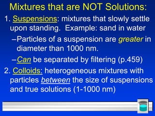 Chapter 15 "Water and Aqueous Systems" PowerPoint Presentation Section 15.3 Heterogeneous Aqueous Systems. OBJECTIVES: Identify the distinguishing characteristics of a colloid. Section 15.3 Heterogeneous Aqueous Systems. OBJECTIVES: Distinguish between a suspension and a solution.