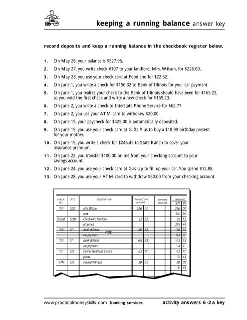 Checkbook register worksheet 1 answers