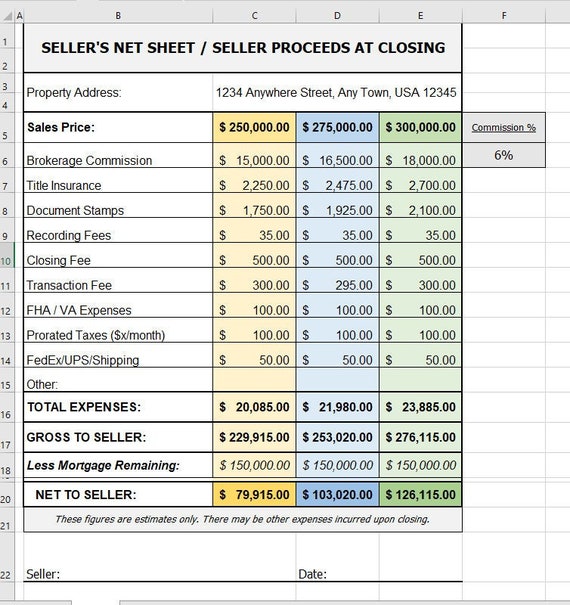 Closing cost worksheet excel