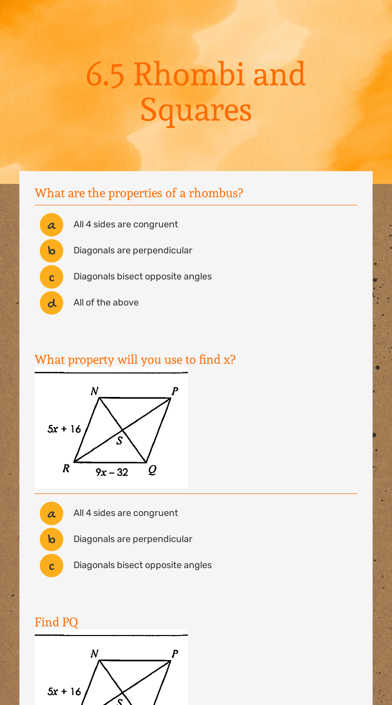 Squares and rhombi worksheet