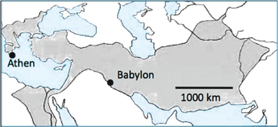 The map shows the empire of Alexander the Great. - Brainly.com A key shows Alexander's Empire in orange and Modern borders. Orange shading extends from Macedonia and Greece in Europe, south into Egypt in Africa, east into Ionia, through Media and Persia, ending near the border of India in Asia. Which civilization did Alexander the Great conquer on the...