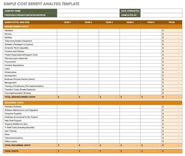 Cost Benefit Analysis Template Excel - Project Management ... Take a plain Excel spreadsheet and write down the title name as cost analysis List down all individual components or ingredients of costing in a column Write down the cost per unit of each component included in the costing Similarly, create cost columns for previous years and make a comparative formation