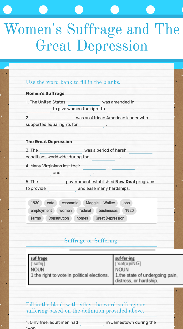 40 the great depression worksheet - Worksheet Master The Great Depression Facts, Information & Worksheets For Kids These are ready-to-use Great Depression worksheets that are perfect for teaching students about the Great Depression which was a severe worldwide economic depression in the decade preceding World War II.