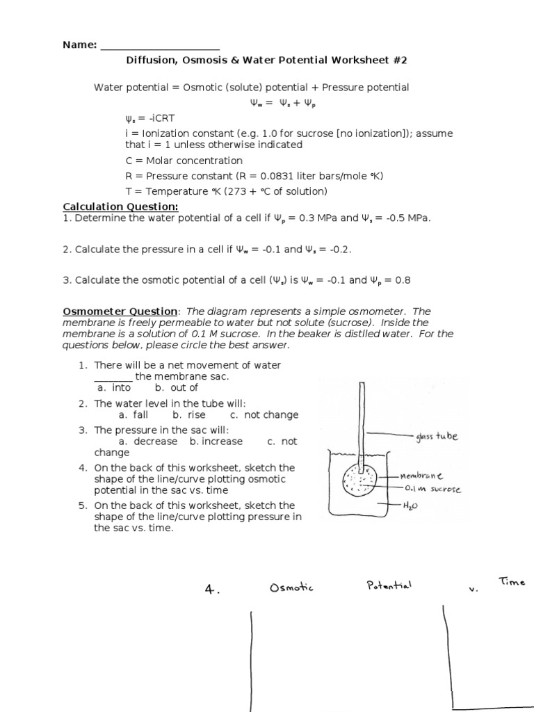 Practice Problems Osmosis And Water Potential Answers Water Potential and Osmosis Worksheet Answers or Worksheets 48 Awesome Diffusion and Osmosis Worksheet Answers Full. Water is a wonderful solvent. Although you may believe you are providing water to your plant, then you're causing water loss. Water could be treated differently depending on the water that enters the treatment plant's quality.