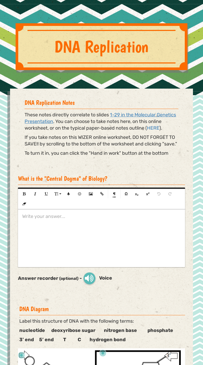 Dna and replication worksheet answers label the diagram. lalocandadellosvapostore.it 28.02.2022 · Page 1/2Biointeractive virus explorer answer key Cell Cycle, DNA Replication, Transcription & Translation Worksheet: Chapter 10: The Cell Cycle 1. Student exploration coral reefs 1 answers Tides gizmo assessment answers Dec 09, 2021 · Best Diabetes Reversal Jan 02, 2022 · Biointeractive virus explorer answer key. html Read the information in this section, … DNA Review Packet Key to Study - Allegany-Limestone High ... Does DNA replication take place in the same direction along both strands of the DNA molecule that is being replicated? Explain your answer. (Hint: Look at the illustration of DNA replication in your textbook.) 23. The sketch below shows the double helix of DNA. Label the following on the diagram: nitrogenous base, replication fork, DNA polymerase, the original strands, and the … quizlet.com › 264142900 › dna-molecule-label-diagramDNA Molecule Label Diagram - Quizlet The enzymes then copy each strand, and once the sample is cooled the number of DNA molecules will have doubled. By repeatedly performing this heating and cooling process, the number of DNA molecules continues to double every temperature cycle (referred to as a PCR cycle). There is a detection threshold of T molecules below which no DNA can be seen. worksheet-dna-structure-and-replication-answer-key.pdf Date: ______ Period: ______. Worksheet – Structure of DNA and Replication. Directions: Label the diagram below with the following choices: • Nucleotide.4 pages