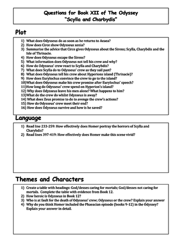 PDF "The Cyclops" from the Odyssey The Odyssey is the story of the attempt of a Greek soldier, Odysseus, to return to his home following the Trojan War. An epic, the Odyssey is composed of many different stories, or episodes, in which the hero, Odysseus, faces all sorts of challenges. In this adventure, Odysseus describes his encounter with the The Odyssey QUESTIONS AND ANSWERS Flashcards | Quizlet Start studying The Odyssey QUESTIONS AND ANSWERS. Learn vocabulary, terms, and more with flashcards, games, and other study tools. PDF The Odyssey Worksheets Answers The Odyssey Worksheets Answers Clauses and Phrases Worksheets and Activities Clauses Worksheet - Here's a fun, mall-themed worksheet to help your students better recognizes clauses and sentence structure. Students identify the subjects, predicates, and objects in 15 sentences and determine how many clauses are in each sentence. The Odyssey Worksheet Answers - Sixteenth Streets The Odyssey Worksheet Answers. Ten more review questions on homer's classic epic, the odyssey, this time covering chapters fifteen and sixteen. Ten comprehension and plot recall questions to help your students review chapters three and four of the story. 31 The Odyssey Worksheet Answers Free Worksheet Spreadsheet from dotpound.blogspot.com The odyssey part 1 worksheet answers.