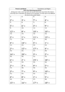 Powers Roots Worksheets - New & Engaging - Cazoomy Powers and roots worksheet 1 targets year 10 working at grade 5 and powers and roots worksheet 2 targets year 11 working at grade 7. Algebra worksheets. Square Numbers and Cube Numbers Powers are sometimes called indices, index notation or exponents. The first 12 square numbers are: 1, 4, 9, 16, 25, 36, 49, 64, 81, 100, 121, 144.