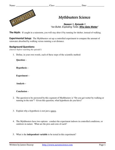 Science Mythbusters Worksheet mythbusters science worksheet in scientific study, it is important to follow the scientific method, a process that scientists of the past have used and refined to experiment and find answers to questions sept 26th - complete mythbusters worksheet and think of a question of a testable question for your experiment (remember $15 for workbooks) sept …