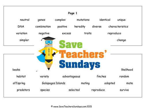 Evolution - Science Classroom Teacher Resources In " The Evolution Game " you're a small primate in the Eocene forests of 50 million years ago, but the world is changing. Have students do the "Evolution" wordsearch puzzle ( doc ). Here's the solution ( doc). Try this " Peppered Moth " activity. Or do this " Sex and the Single Guppy " activity with the accompanying worksheet.