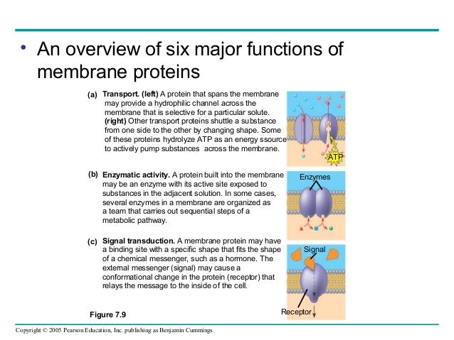 Ch 7: Membrane Structure and Function - SlideShare Figure 7.8 Factors that affect membrane fluidity. Figure 7.9 The structure of a transmembrane protein. Figure 7.10 Some functions of membrane proteins. Figure 7.10 Some functions of membrane proteins. Figure 7.10 Some functions of membrane proteins. Figure 7.11 Impact: Blocking HIV Entry into Cells as a Treatment for HIV Infections