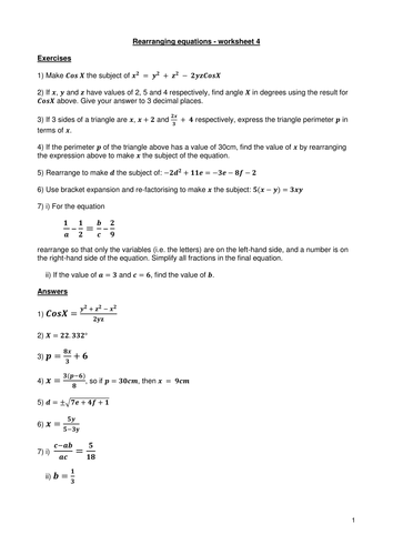 Rearranging Equations Worksheet - GCSE Maths [FREE] Rearranging Equations Worksheet Help your students prepare for their Maths GCSE with this free rearranging equations worksheet of 37 questions and answers Section 1 of the rearranging equations worksheet contains 27 skills-based rearranging equations questions, in 3 groups to support differentiation