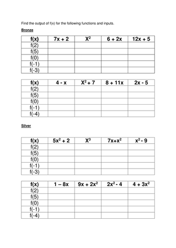 Function Worksheets - Math Worksheets 4 Kids Get your hands on these evaluating function worksheets to practice substituting input values in different types of functions like linear, quadratic, polynomial, rational, exponential, trigonometric, and piecewise to get the output. Also, evaluate functions from graphs. Try our revision worksheets as well. Composition of Functions Worksheets
