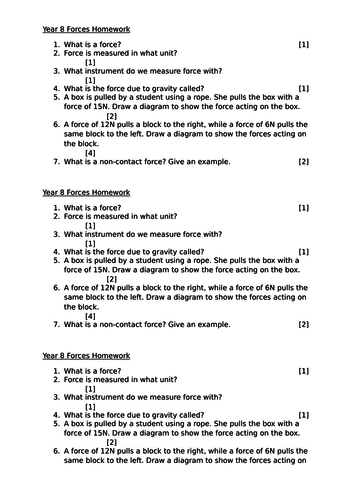 Science 8 types of forces worksheet answers. Quiz & Worksheet - Characteristics & Types of Force | Study.com This lesson covers the following objectives: Define force. Examine the properties of the law of inertia. Find examples of a vector quantity. Learn what contact forces are. Identify properties of ... Force & Motion Quiz: 8th Grade Science Questions & Answers A. Every action has an equal and opposite reaction. B. An object's acceleration depends on the mass of the object and the amount of force being applied. C. An object in motion stays in motion, and an object at rest stays at rest until acted upon by an outside force. 18. Free Science Worksheets - TeAch-nology.com Forces Of Nature - Worksheets that help students learn about hurricanes, ... Computer Science - These types of courses are ideal for students looking to build a career in the IT or software industry. With the rapid increase in the demand for IT specialists, this course forms a strong foundation for students interested in this field. Students cover topics like computation, … Science — Physics/Chemistry – Easy Peasy All-in-One Homeschool Fill in the bottom of your worksheet. Keep it in your science notebook. Lesson 22 ... Level 5-8 * Play this forces in action activity. (Skip the video at the top of the page.) Scroll down and click on the triangle on the bottom activity on the page. Makes sure to read the directions above the activity. If you don’t see it, click on “show question.” You can play with larger and smaller ...