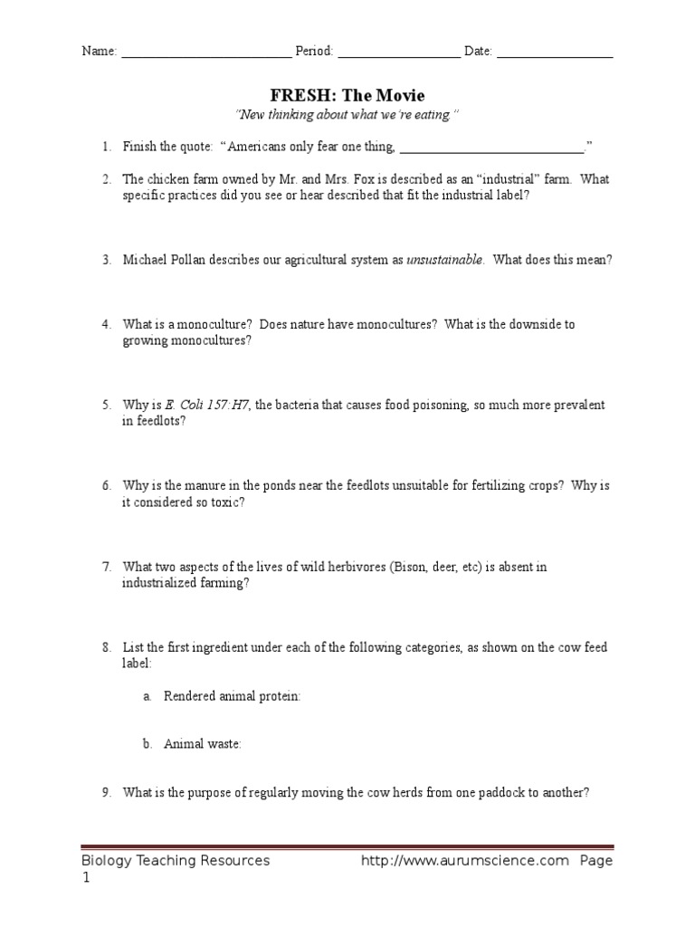 Fresh the movie worksheet answers
