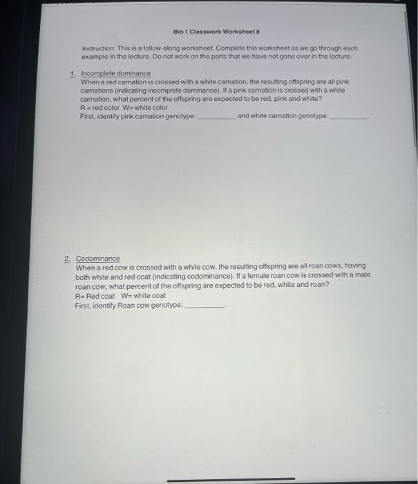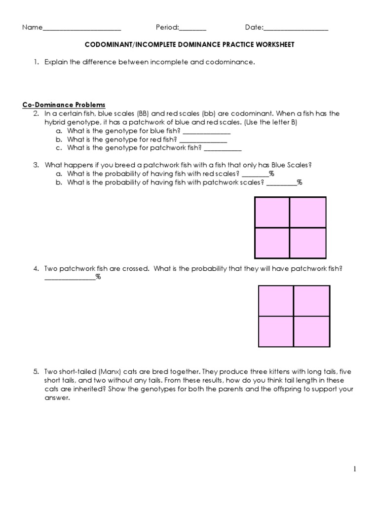 Science Worksheets | Printable Science Worksheets for ... Quiz & Worksheet - Codominance and Incomplete Dominance. 31K. Quiz & Worksheet - Lincoln's Plans for Reconstruction. 56K. Types of Motion: Quiz & Worksheet for Kids. 18K. Iready 5th Grade Worksheets - K12 Workbook Displaying all worksheets related to - Iready 5th Grade. Worksheets are Grade 5 mathematics, Grade 5 mathematics, 5th grade math resources, I ready vocabulary words in i ready lessons, Math work, A list of vocabulary words in i ready instruction lessons, I ready diagnostic sample reading and math items, Norms tables for reading and mathematics for grades k8 20202021. Incomplete and Codominance Worksheet - Amazon S3 Explain the difference between incomplete dominance and codominance: ... Biology 1 - Genetics Worksheet #2 - Codominance, Incomplete Dominance, ...