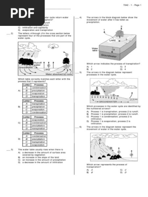 PDF Name: Water Cycle Questions Worksheet - John Bowne High School ___ 10) The diagram below shows a model of the water cycle. The arrows show the movement of water molecules through the water cycle. The circled numbers represent the processes that occur as the water molecules reach the different stages of the water cycle. Complete the table provided below by identifying the name of the water cycle process ...