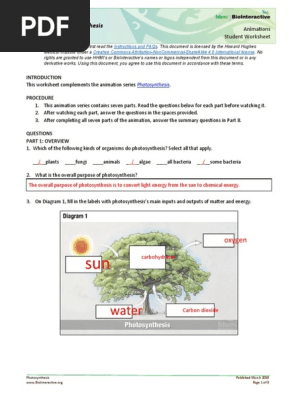 Quiz & Worksheet - Photosynthesis Process | Study.com Science Courses / AP Biology: Homework Help Resource Course / AP Biology - Metabolic Biochemistry: Homework Help Chapter Photosynthesis: Definition & Reactions - Quiz & Worksheet Lesson AP Biology Lab - Photosynthesis Photosynthesis fuels ecosystems and replenishes the Earth's atmosphere with oxygen. Like all enzyme-driven reactions, the rate of photosynthesis can be measured by either the disappearance of substrate, or the accumulation of products. The equation for photosynthesis is: 6CO 2 + 6H 2 O ------light--------> C 6 H 12 O 6 + 6O 2 + H 2 0 Modern Biology Photosynthesis Skills Worksheet Answer Key Number the following steps of light reactions in the order in which they occur. Pdf biology photosynthesis guide answer key under as competently as review biology photosynthesis guide ap biology lab review packet answers. 82 Photosynthesis An Overview Answer Key Pdf. Photosynthesis study guide act course standards are written in italics.