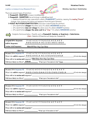 Dna mutations practice worksheet. learn.genetics.utah.edu › content › basicsTranscribe and Translate a Gene - University of Utah Home; Basic Genetics; Transcribe and Translate a Gene; Transcribe and Translate a Gene. CGA GUA ACG UUG Phenylalanine Aspartic Acid Asparagine Valine Remember that A in DNA pairs with U in RNA. evolution.berkeley.edu › teach-resourcesTeaching Resources - Understanding Evolution Their study used DNA data to identify unknown organisms in order to investigate whether whales are being illegally hunted and sold as meat. By going through the lesson, students practice various aspects of the process of science by asking scientific questions, collecting and analyzing data, comparing their results with those of the real ... › science › high-school-biologyTranscription and translation (practice) | Khan Academy DNA replication and RNA transcription and translation. Intro to gene expression (central dogma) The genetic code. ... Practice: Codons and mutations. Next lesson. coursehelponline.comCourse Help Online - Have your academic paper written by a ... 100% money-back guarantee. With our money back guarantee, our customers have the right to request and get a refund at any stage of their order in case something goes wrong.