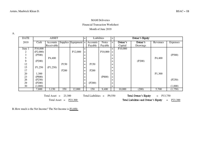 Expanded accounting equation worksheet. Transactions Expanded Equation - BC Bookkeeping Tutorials ... Transaction Analysis Using the Expanded Accounting Equation Assets = Liabilities + Owner's Equity In the previous table, we entered all the transactions that affected Owner's Equity under one heading; namely, Owner's Equity and disregarded whether it was a revenue, expense, or draw item. expanded accounting equation worksheet 31 Expanded Accounting Equation Worksheet - Notutahituq Worksheet notutahituq.blogspot.com. equation liabilities investopedia statements profit exxon implies stockrington xom. Accounting Equation Exercises Grade 8 - Tessshebaylo . equation. 5.7: End of chapter exercises - Business LibreTexts Prepare an expanded accounting equation worksheet for the Zeon Company for February given what was done in January and the following transactions: February 5 Paid $450 in cash to the bank on the loan borrowed in January and paid $400 in interest on that loan. February 11 Paid the bill from the utilities company from January Expanded Accounting Equation - YouTube made with ezvid, free download at Expanded Accounting Equation