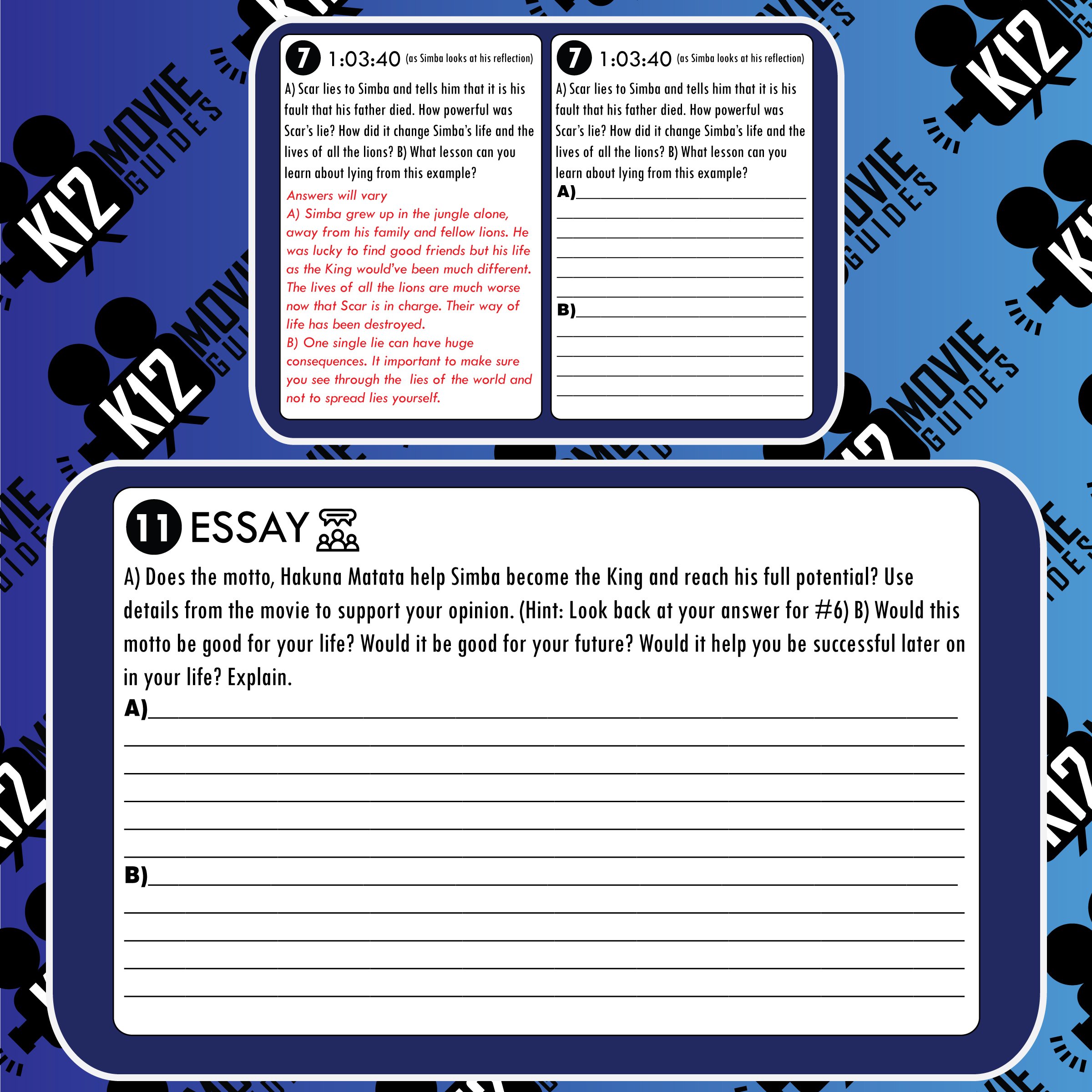 The lion king worksheet answers