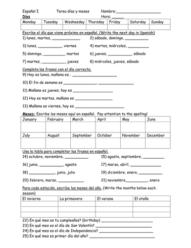 Days and months in spanish worksheet. Days and Months in Spanish Verkko8.4.2022 · Next Activities. GAMES: Try our interactive vocabulary games to practice: Days - Game 1 and Days Game 2.We have another game where you need to translate the word from English, to its correct word in Spanish: English to Spanish Translation Game There is also a game about the Months in Spanish.. NOTES: You may want to … Microsoft is building an Xbox mobile gaming store to take on … Oct 19, 2022 · Microsoft’s Activision Blizzard deal is key to the company’s mobile gaming efforts. Microsoft is quietly building a mobile Xbox store that will rely on Activision and King games. Unbanked American households hit record low numbers in 2021 Verkko25.10.2022 · The number of American households that were unbanked last year dropped to its lowest level since 2009, a dip due in part to people opening accounts to receive financial assistance during the ... Elementary Spanish Resources | Spanish4Teachers.org VerkkoElementary Spanish Worksheet Days of the Week _ Los dias spanish 4 teachers. org c rossword puzzle to practic e the days of the week in Spanish. Elementary Worksheet o f the Months in Spanish _ Los Meses spanish 4 teachers. org c rossword puzzle to practice the days of the week in Spanish. Spanish Numbers 0 – 10 Worksheet _Los …
