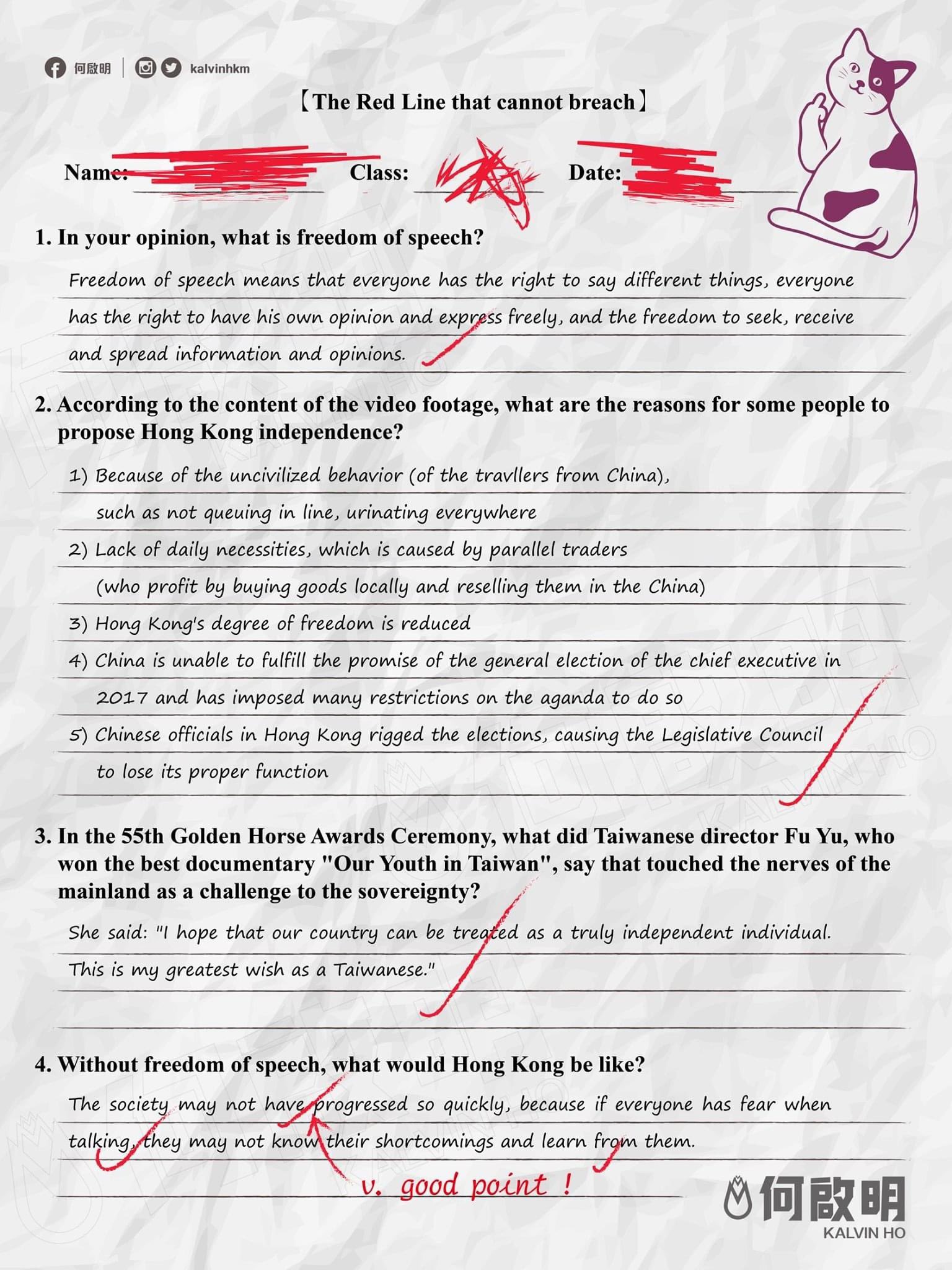 Freedom of speech worksheet