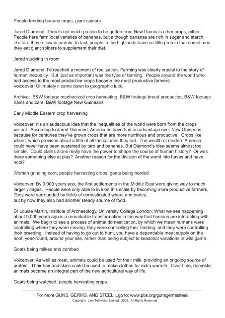 Guns, Germs and Steel Flashcards | Quizlet Guns, germs, and steel. Jared Diamond refers to the people of New Guinea as "among the world's most culturally diverse and adaptable people in the world", yet they have much less than modern Americans. Diamond has developed a theory about what has caused these huge discrepancies among different countries, and he says it boils down to geographic ... Guns Germ And Steel Episode 3 Worksheets - K12 Workbook Displaying all worksheets related to - Guns Germ And Steel Episode 3. Worksheets are Name date viewing guide guns germs and steel episode, Curriculum unit introduction title of unit change and, Newsies viewing guide answer key, Name date viewing guide teachers answer key guns, Msl study guide answer key, What a world 1 answer keys, What a world 1 answer keys ebook, What a world 1 answer keys pdf. Guns, Germs, and Steel Worksheet.pdf - Google Docs You may be offline or with limited connectivity. ... Download Guns Germs & Steel: Educators . Lesson Plans | PBS Guns, Germs and Steel provides enormous educational scope. These lesson plans are designed to accompany specific episodes in the three-part PBS series. Each lesson focuses on a specific part of ...