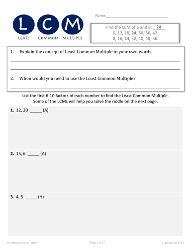 Free LCM Worksheets - Cool Math PDF and Printable worksheets for 5th ... Lowest Common Multiple Worksheets. Lowest common multiple, or the least common multiple, is the smallest integer that can be divided by two or more given numbers.LCM forms an important part of the math curriculum in the United States. The free LCM worksheetson JumpStart and Math Blaster are designed to encourage logical solving of LCM problems and enables students to crack 4th grade and 5th ...
