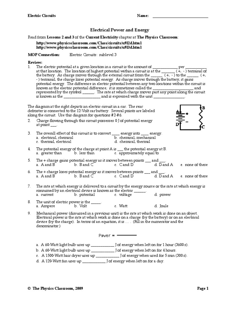 Work And Energy Worksheet Answer Key Pdf Physics Classroom Work And Energy Worksheet Answer Key Pdf Physics Classroom 4615 kb/s 5515 Work And Energy Review - With Answers - Physics Classroom TRUE - Work is a form of energy, and in fact it has units of energy. b. FALSE - Watt is the standard metric unit of power; Joule is the standard metric unit of energy. c. TRUE - A N•m is equal to a Joule. d.