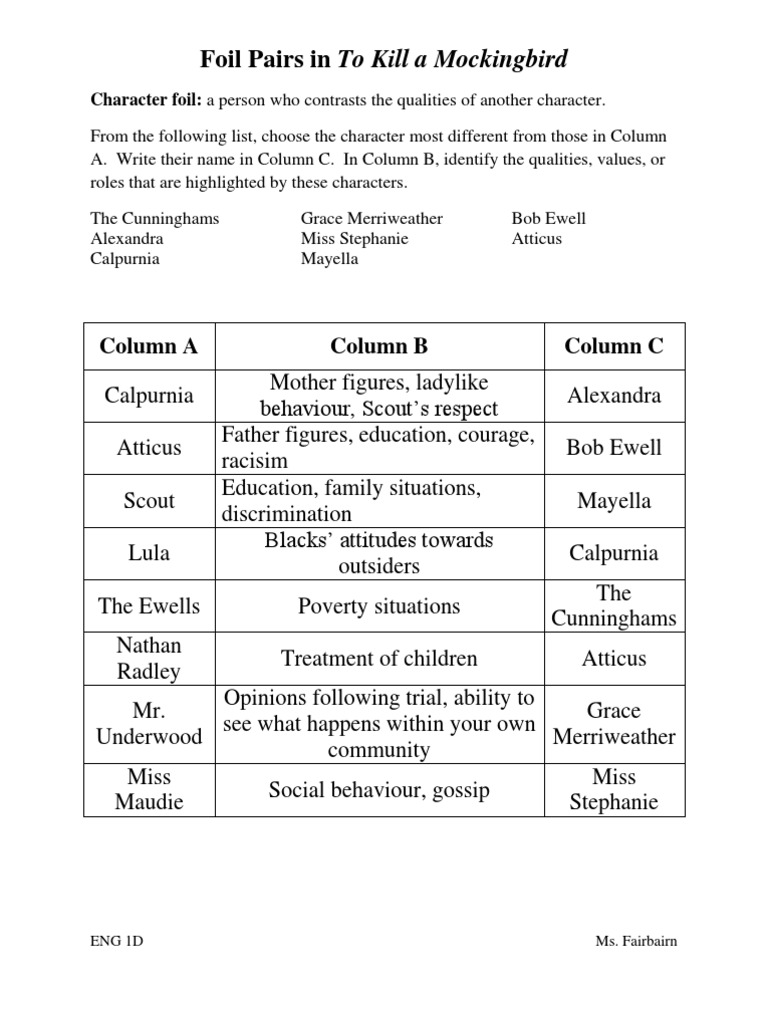 To Kill A Mockingbird Character Chart Worksheet All groups and messages ... ...