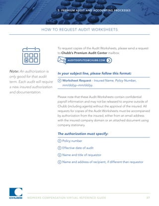 PDF Workers' Compensation Audit - Irving Weber Associates, Inc. Workers' Compensation Audit For: Date: Unlike the estimated premium originally used to calculate your workers' compensation insurance premium, an annual premium audit determines the accurate costs for the policy period. ... The contact person should review the prior year's billing statements and auditor's worksheets (if requested in the ...