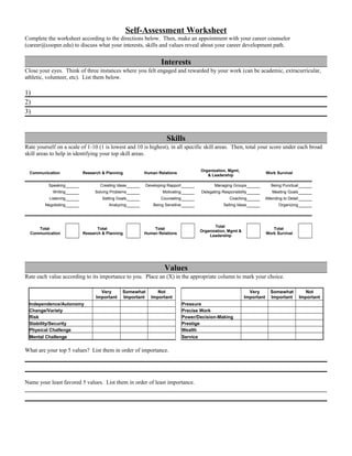PDF Skill Assessment Worksheet - University of Michigan Skill Assessment Worksheet Review the skills listed below. Place a checkmark in the S trength column if you view this as a strength or area you bring to the table. Communication Skills Strength Write, edit, translate, interpret or critique words Speak in public, debate, advocate, present or demonstrate an idea