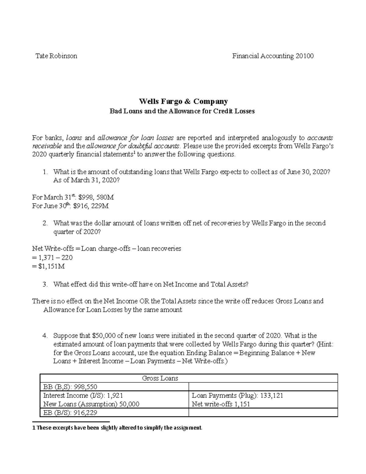 Wells fargo financial worksheet