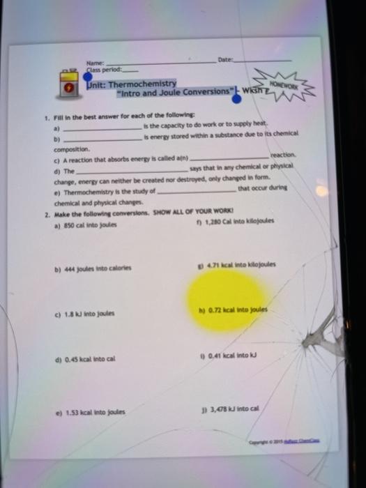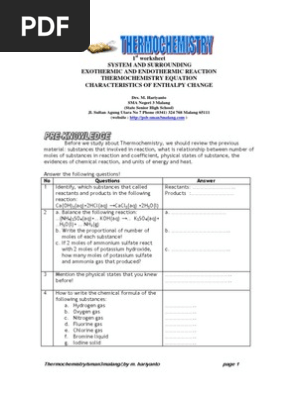 Chapter 17 Thermochemistry Worksheet Answers - qstion.co Energy transformations (page 505) 1. Chapter 17 thermochemistry worksheet answers _ this section explains the relationship between energy and heat, and distinguishes between heat and specific heat capacity. Suppose a 0.17 kg billiard ball is rolling down a pool table with an initial speed of 4.5 m/s. 141 Thermochemistry worksheet - Thermochemistry Worksheet How much heat ... General Chemistry I (141) Thermochemistry worksheet questions. thermochemistry worksheet how much heat, in calories, is released or absorbed if 15.0 sample of ... Teacher'S Guide and Answer KEY for Wheelock'S Latin; AP Government Required Foundational Document Study Sheet; BIO 140 - Cellular Respiration Case Study; HW-10-solution;
